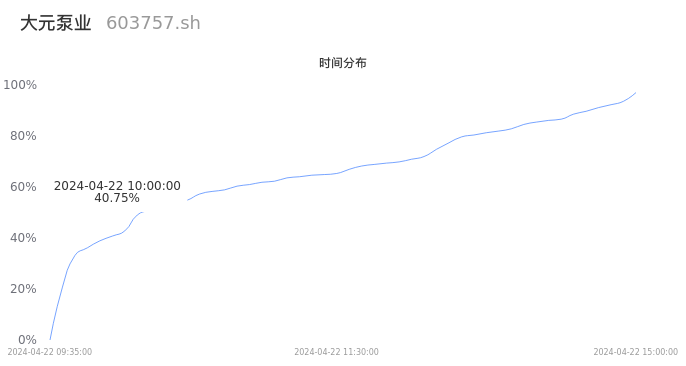 603757大元泵业2024年04月22日成交2.69万手,成交金额6335.28万元,相较昨日放量1.50万手,换手率1.61%,成交清淡。