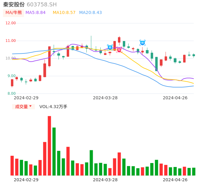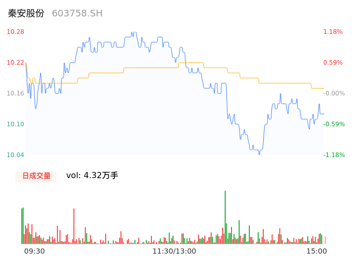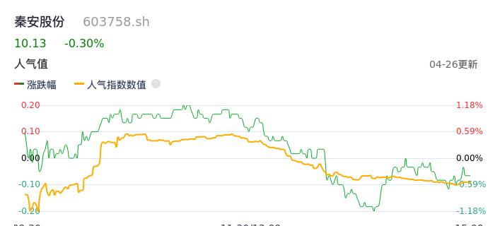 04月26日,秦安股份收报10.13,股价涨幅-0.30%,成交金额4398.96万元,换手率0.99%。