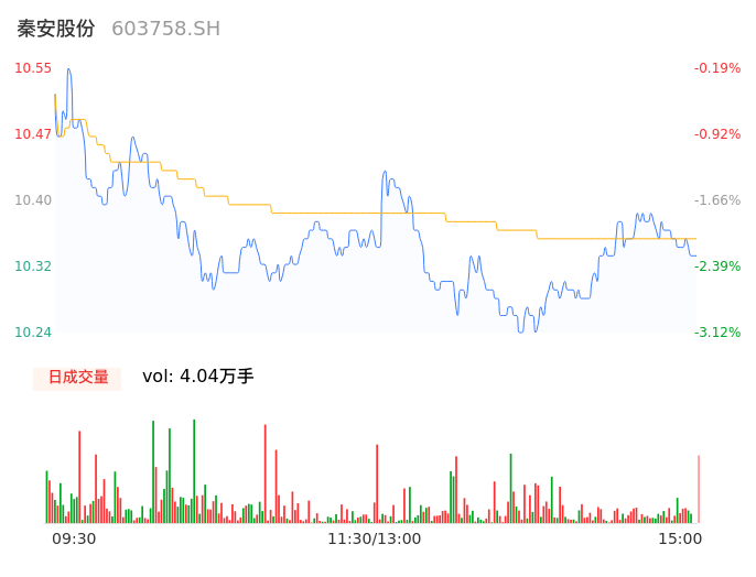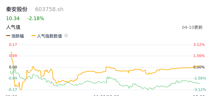 04月10日,秦安股份收报10.34,股价涨幅-2.18%,成交金额4178.58万元,换手率0.92%。