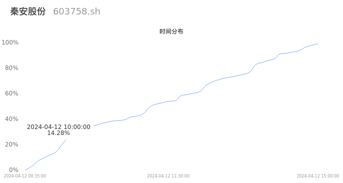 603758秦安股份2024年04月12日成交4.92万手,成交金额5140.91万元,相较昨日放量3592手,换手率1.12%,成交清淡。