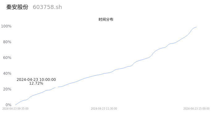 603758秦安股份2024年04月23日成交3.95万手,成交金额3863.56万元,相较昨日缩量7722手,换手率0.90%,成交清淡。