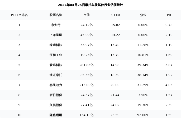 从估值角度看:隆鑫通用最新市盈率PETTM为25.59,在行业内排名8/16,处于92.60分位。