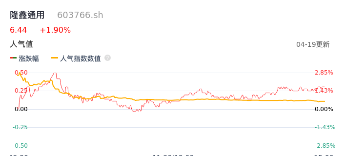 04月19日,隆鑫通用收报6.44,股价涨幅1.90%,成交金额2.06亿元,换手率1.57%。