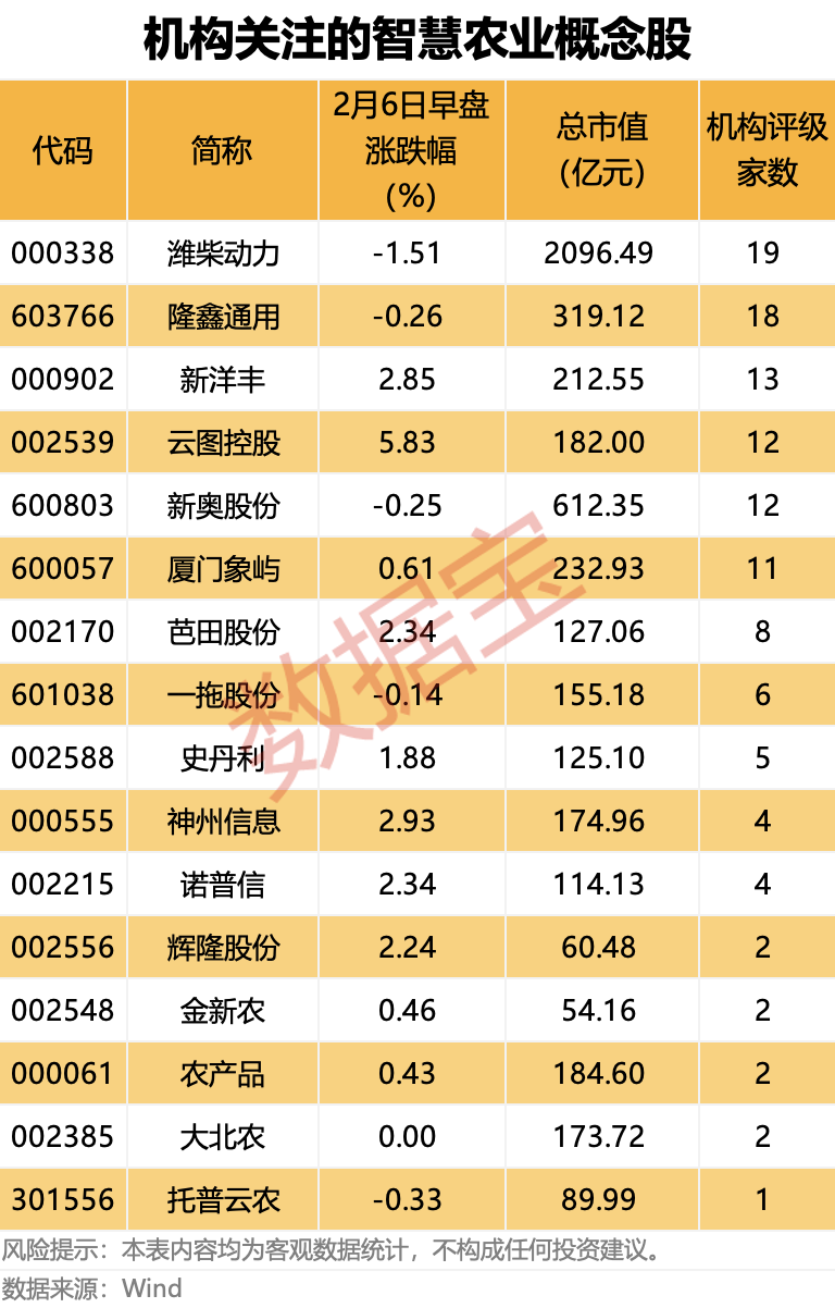 华泰证券研报认为,在历年中央一号文件中,智慧农业都是当年农业农村工作重点,具有重大政策导向。智慧农业是未来提高农业生产效率、实现增产降本的重要助力,看好智慧农业方向相关企业的长期发展。
