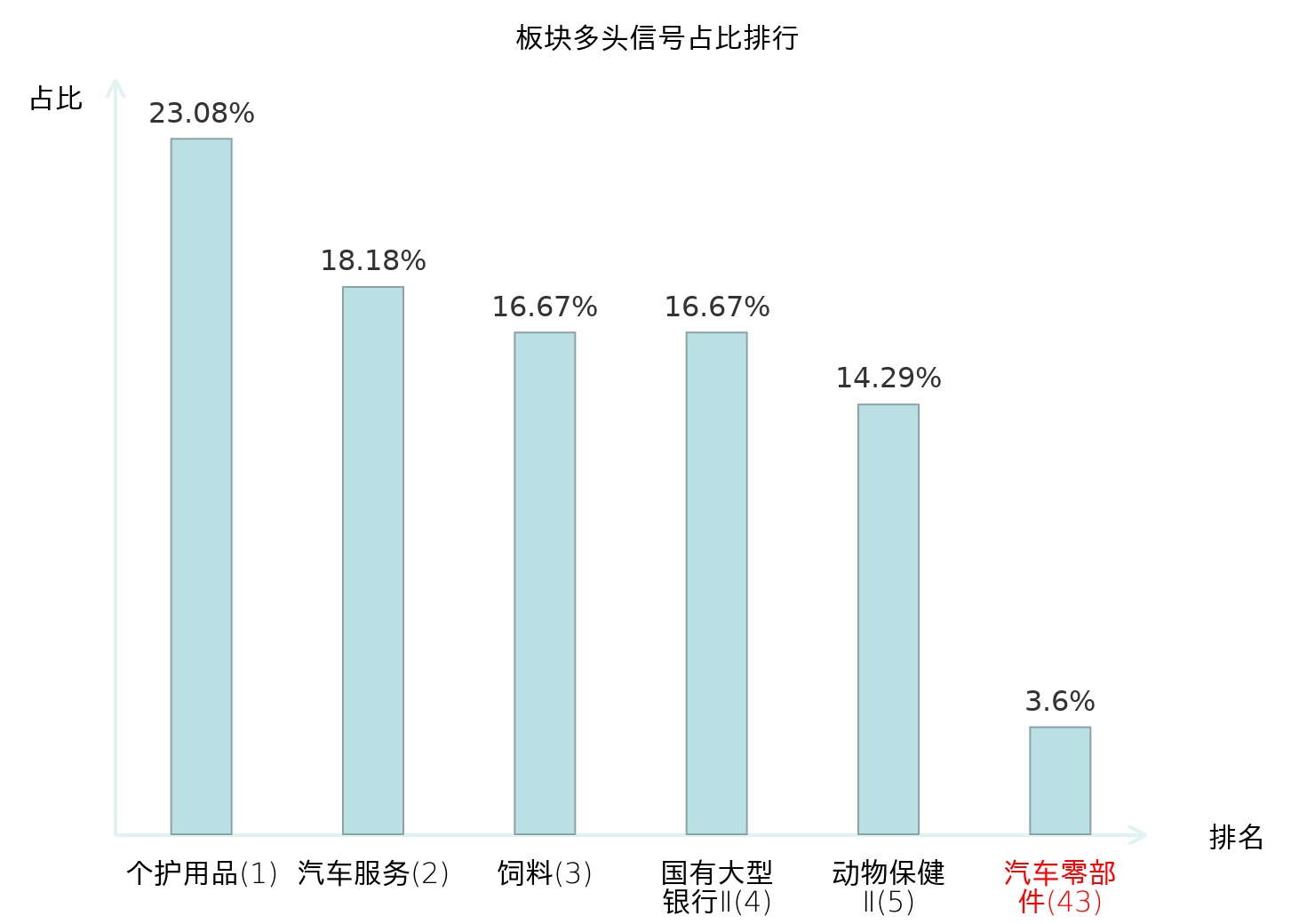 全市场所有行业板块中主力多头信号占比排名中,个护用品板块位居第一。国有大型银行Ⅱ板块名次提升最快,较昨日上升119位。