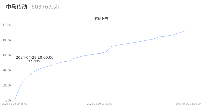 603767中马传动2024年04月29日成交8.22万手,成交金额1.18亿元,相较昨日放量2.84万手,换手率2.66%,成交清淡。