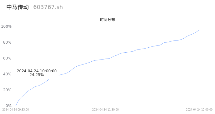 603767中马传动2024年04月24日成交6.50万手,成交金额8964.81万元,相较昨日缩量3900手,换手率2.11%,成交清淡。