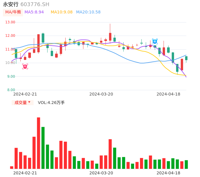 04月18日,永安行收报10.21,股价涨幅-0.78%,成交金额4345.07万元,换手率1.86%。