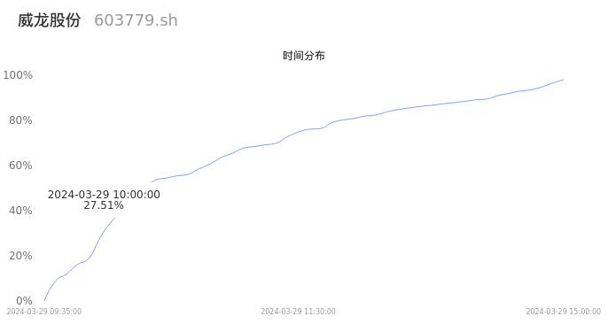 603779威龙股份2024年03月29日成交8.26万手,成交金额7658.89万元,相较昨日缩量1311手,换手率2.48%,成交清淡。