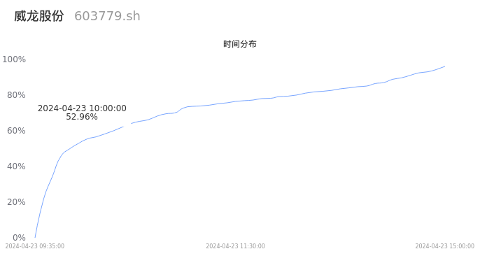 根据成交分布分析,该股票当天放量成交,成交清淡。时间上看,早盘前半小时成交量占据当天总成交量的52.96%;价格上看,成交呈现左偏峰。成交分布分析主要研究股票成交的分布特性,不具有预测功能,请知悉。