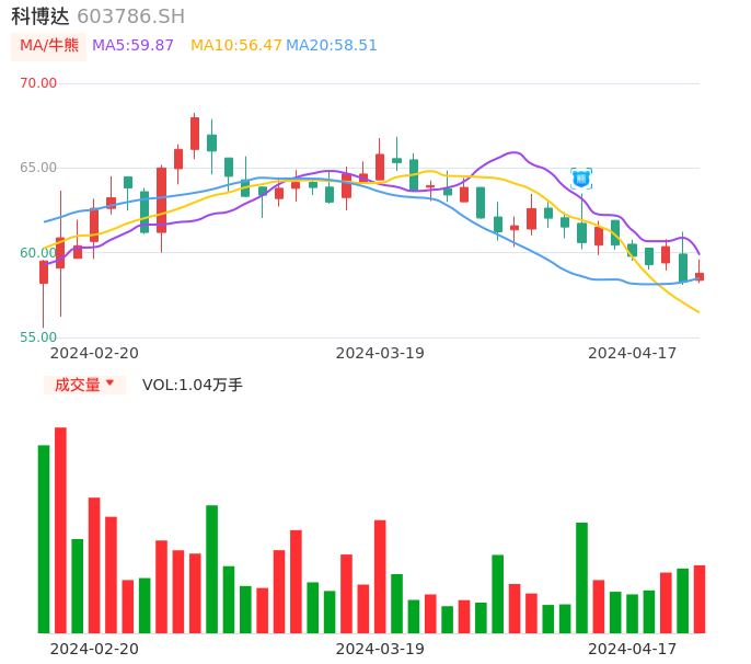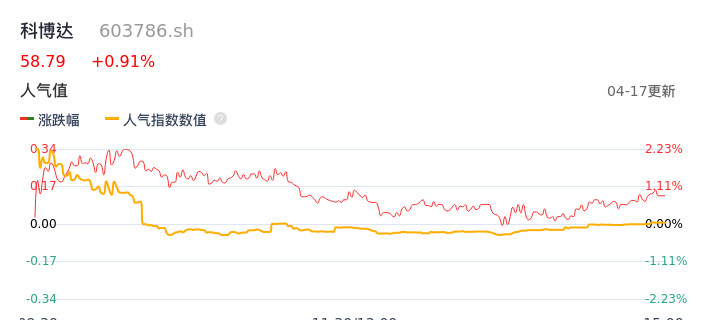 04月17日,科博达收报58.79,股价涨幅0.91%,成交金额6148.15万元,换手率0.26%。