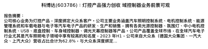 值得注意的是:2024年04月东北证券的李恒光/史久杰分析师,首次发布关于科博达的研究报告,标题为:科博达(603786):灯控产品强力创收 域控制器业务前景可观。