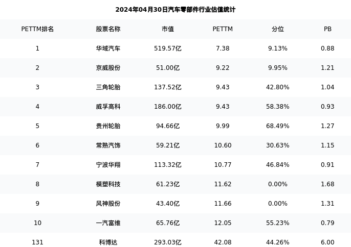 从估值角度看:科博达最新市盈率PETTM为42.08,在行业内排名131/214,处于44.26分位。