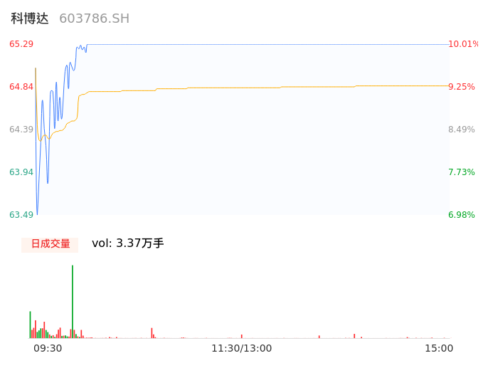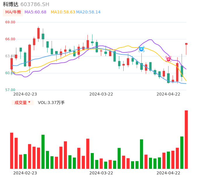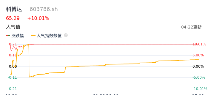 04月22日,科博达收报65.29,股价涨幅10.01%,成交金额2.18亿元,换手率0.84%。