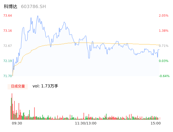 04月30日,科博达收报72.55,股价涨幅0.54%,成交金额1.26亿元,换手率0.43%。