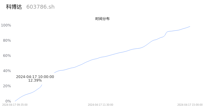 根据成交分布分析,该股票当天放量成交,成交清淡。时间上看,早盘前半小时成交量占据当天总成交量的12.39%;价格上看,成交呈现右偏峰。成交分布分析主要研究股票成交的分布特性,不具有预测功能,请知悉。