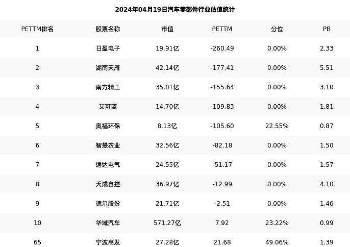 从估值角度看:宁波高发最新市盈率PETTM为21.68,在行业内排名56/214,处于49.06分位。