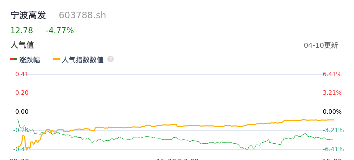 04月10日,宁波高发收报12.78,股价涨幅-4.77%,成交金额8046.36万元,换手率2.81%。