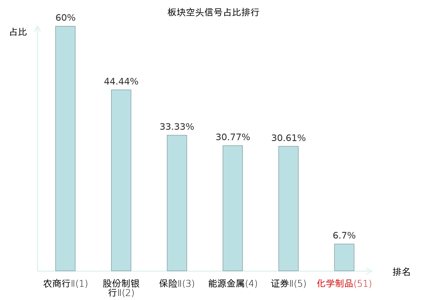 全市场所有行业板块中主力空头信号占比排名中,农商行Ⅱ板块位居第一。证券Ⅱ板块名次提升最快,较昨日上升119位。