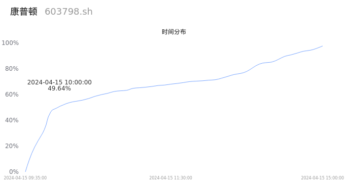 根据成交分布分析,该股票当天放量成交,成交清淡。时间上看,早盘前半小时成交量占据当天总成交量的49.64%;价格上看,成交呈现左偏峰。成交分布分析主要研究股票成交的分布特性,不具有预测功能,请知悉。