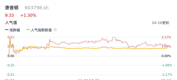 04月26日,康普顿收报9.33,股价涨幅1.30%,成交金额5651.43万元,换手率2.36%。