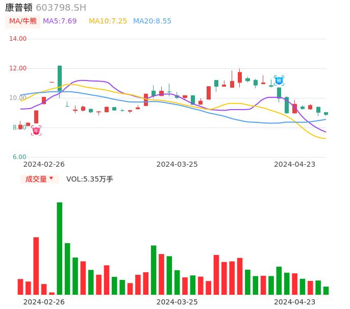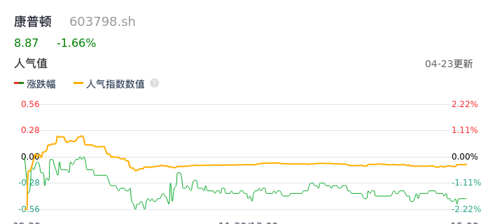 04月23日,康普顿收报8.87,股价涨幅-1.66%,成交金额4763.28万元,换手率2.09%。