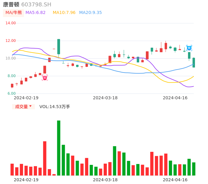 04月16日,康普顿收报8.97,股价涨幅-10.03%,成交金额1.33亿元,换手率5.67%。