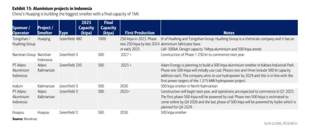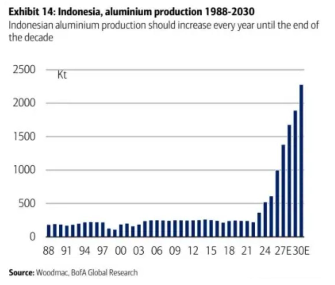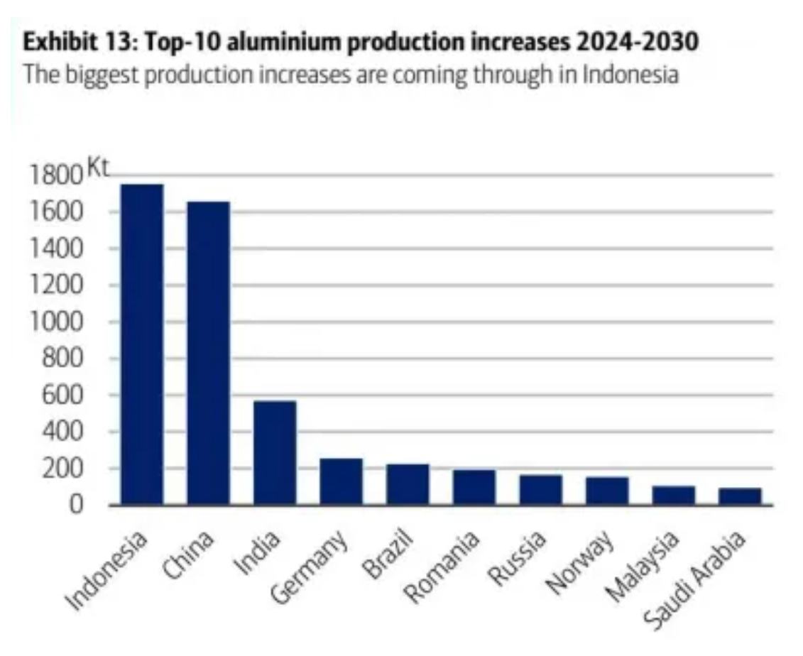 尽管中国供应 “踩刹车”,印尼将成为 2026 年及未来全球铝供应的主要增长点 —— 预计到 2030 年,印尼铝产能将新增 170 万吨,主要由中国企业主导(如青山集团、华友钴业等在印尼布局绿色冶炼项目,其中华庆项目最终产能达 100 万吨)。