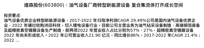 值得注意的是:2024年03月浙商证券的邱世梁/王华君/张菁分析师,首次发布关于道森股份的研究报告,标题为:道森股份(603800):油气设备厂商转型新能源设备 复合集流体打开成长空间。