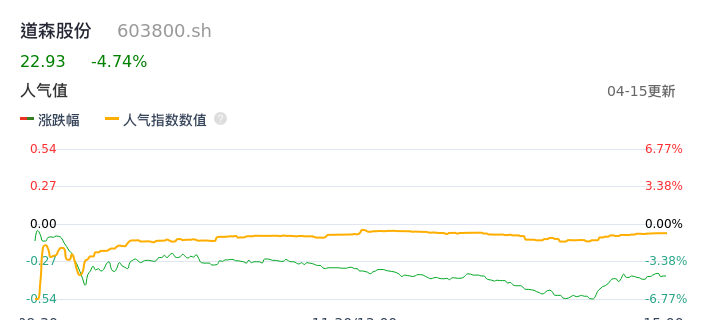 04月15日,道森股份收报22.93,股价涨幅-4.74%,成交金额3194.73万元,换手率0.67%。