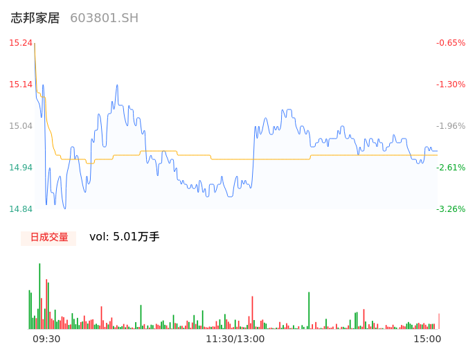 04月11日,志邦家居收报15.00,股价涨幅-2.22%,成交金额7499.33万元,换手率1.16%。