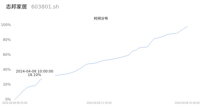 603801志邦家居2024年04月08日成交7.78万手,成交金额1.24亿元,相较昨日放量2.76万手,换手率1.80%,成交清淡。