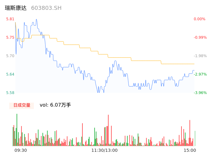04月19日,瑞斯康达收报5.63,股价涨幅-3.10%,成交金额3441.70万元,换手率1.43%。