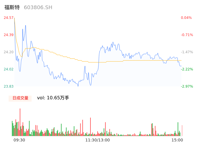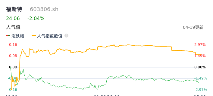 04月19日,福斯特收报24.06,股价涨幅-2.04%,成交金额2.57亿元,换手率0.57%。