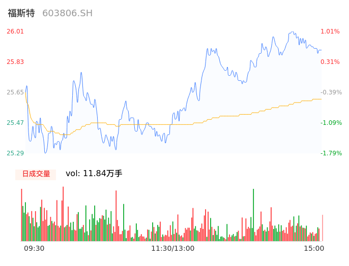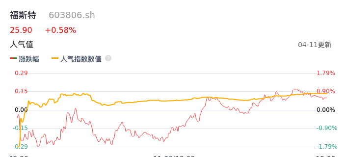 04月11日,福斯特收报25.90,股价涨幅0.58%,成交金额3.03亿元,换手率0.64%。