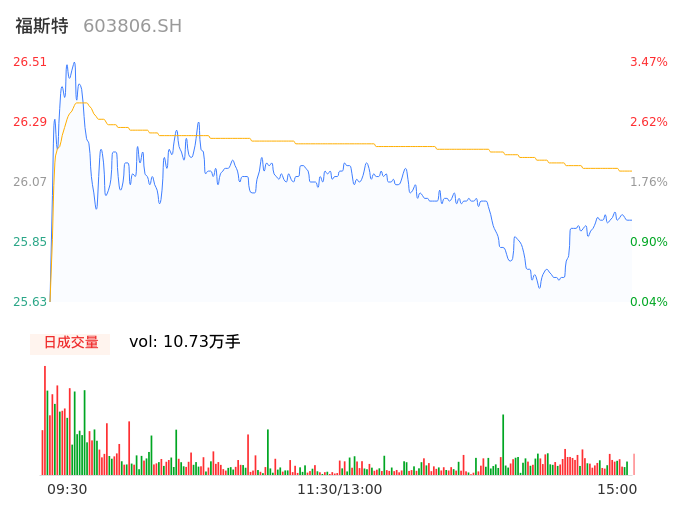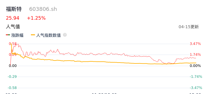 04月15日,福斯特收报25.94,股价涨幅1.25%,成交金额2.80亿元,换手率0.58%。