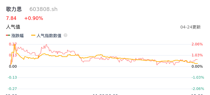 04月24日,歌力思收报7.84,股价涨幅0.90%,成交金额1666.31万元,换手率0.58%。