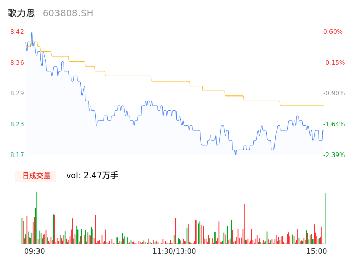 04月10日,歌力思收报8.20,股价涨幅-2.03%,成交金额2038.74万元,换手率0.67%。