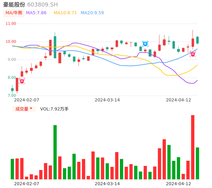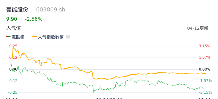 04月12日,豪能股份收报9.90,股价涨幅-2.56%,成交金额7918.70万元,换手率2.02%。