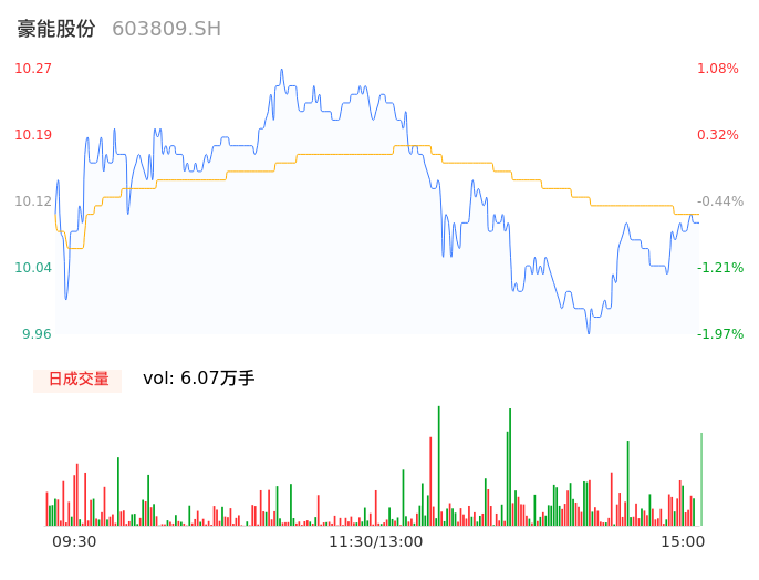 04月26日,豪能股份收报10.03,股价涨幅-1.28%,成交金额6128.31万元,换手率1.54%。