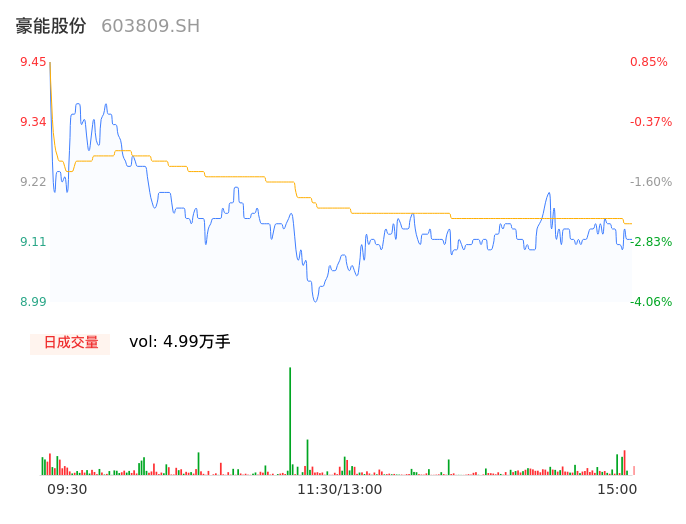 04月19日,豪能股份收报9.13,股价涨幅-2.56%,成交金额4562.49万元,换手率1.27%。