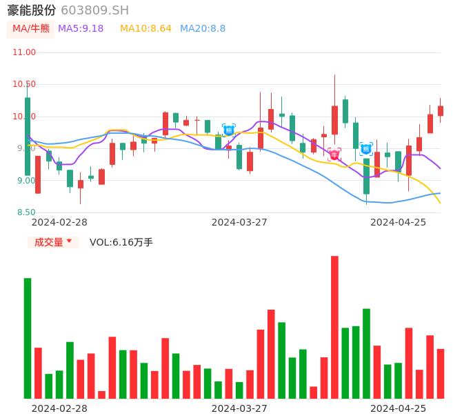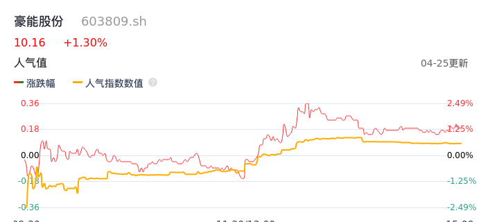 04月25日,豪能股份收报10.16,股价涨幅1.30%,成交金额6215.72万元,换手率1.57%。
