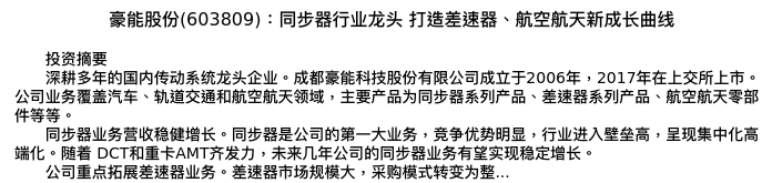 值得注意的是:2024年03月上海证券的仇百良/李煦阳分析师,首次发布关于豪能股份的研究报告,标题为:豪能股份(603809):同步器行业龙头 打造差速器、航空航天新成长曲线。