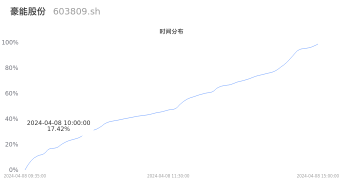 根据成交分布分析,该股票当天放量成交,成交清淡。时间上看,早盘前半小时成交量占据当天总成交量的17.42%;价格上看,成交呈现中间峰。成交分布分析主要研究股票成交的分布特性,不具有预测功能,请知悉。