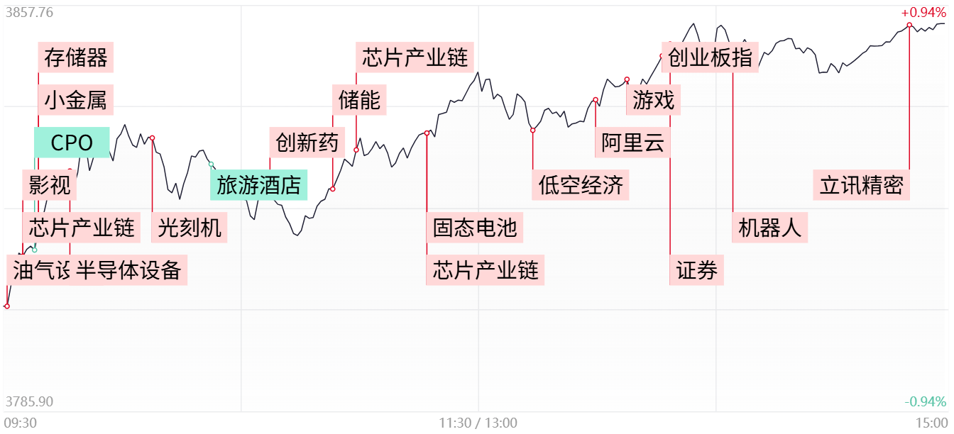 今日市场震荡走强,三大指数全线收红,深成指与创业板指再创阶段新高。在成功站上9月18日大量高点后,短线有望重回震荡走高的上涨结构之中。另一方面,短线情绪显著回暖,全市场超4400只收涨,逾百股涨停或涨超10%。美中不足的是,在今日量能不增反减,就目前的量能水平而言是无法支撑起如此多热点共同演绎,后续是否存在足够的增量资金入场仍是关键,若量能维持温和递增态势的话,短线仍具进一步冲高之动能,反之量能若始终无法有效放大,短线大概率仍以震荡为主,届时把握热点间的轮动节奏或是关键。