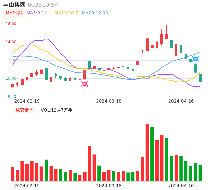 04月16日,丰山集团收报9.59,股价涨幅-9.95%,成交金额1.23亿元,换手率7.55%。