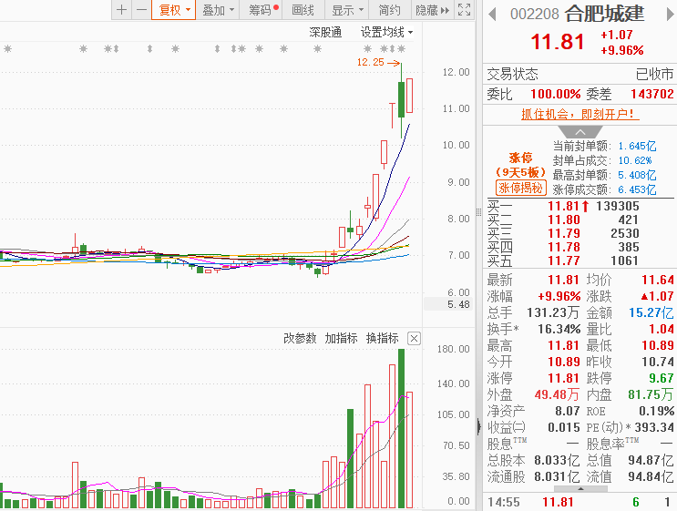 市场情绪:全天市场冲高回落,情绪低迷,时隔一个多月后成交额再次跌破2万亿,市场热点较为杂乱,全市场近4200只个股下跌。今日共40股涨停,连板股总数12只,18股封板未遂,封板率为69%(不含ST股、退市股)。焦点股方面,上海微电子概念股华建集团20天10板,煤炭板块午后再度活跃,大有能源走出9天5板、宝泰隆5天4板,长鑫存储概念股合肥城建9天5板。