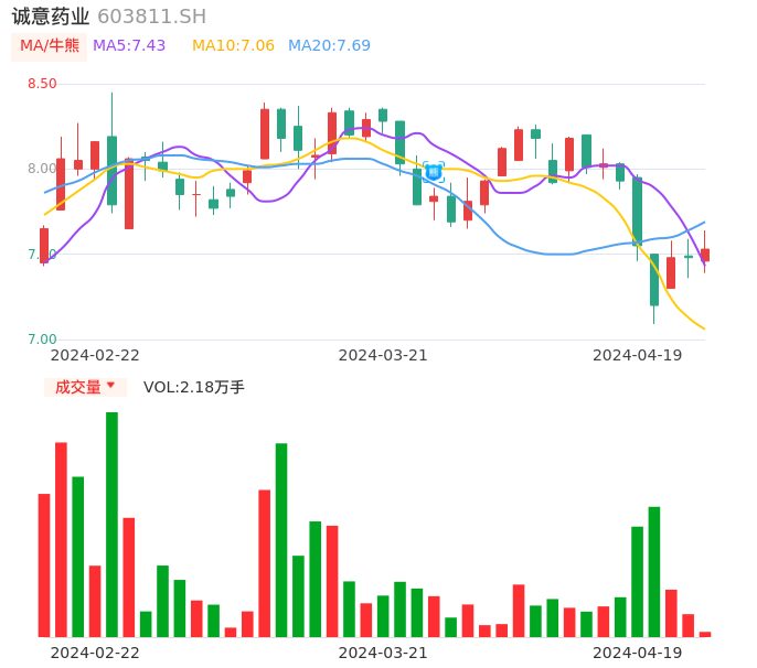 04月19日,诚意药业收报7.53,股价涨幅0.67%,成交金额1642.80万元,换手率0.67%。