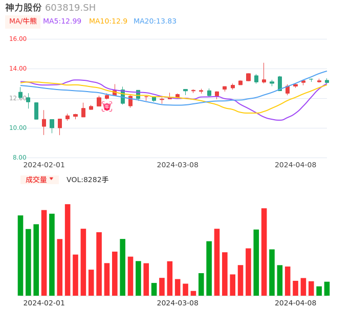 04月08日,神力股份收报13.05,股价涨幅-0.99%,成交金额1088.73万元,换手率0.38%。