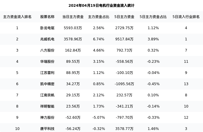 从主力资金流向来看,电机行业今日主力资金流入14.65亿元,在所有申万二级行业中排名:120/131。